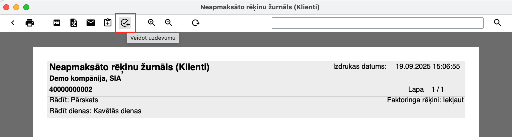 - No Atskaites loga rīkjoslas izvēlies ikonu Veidot uzdevumu.