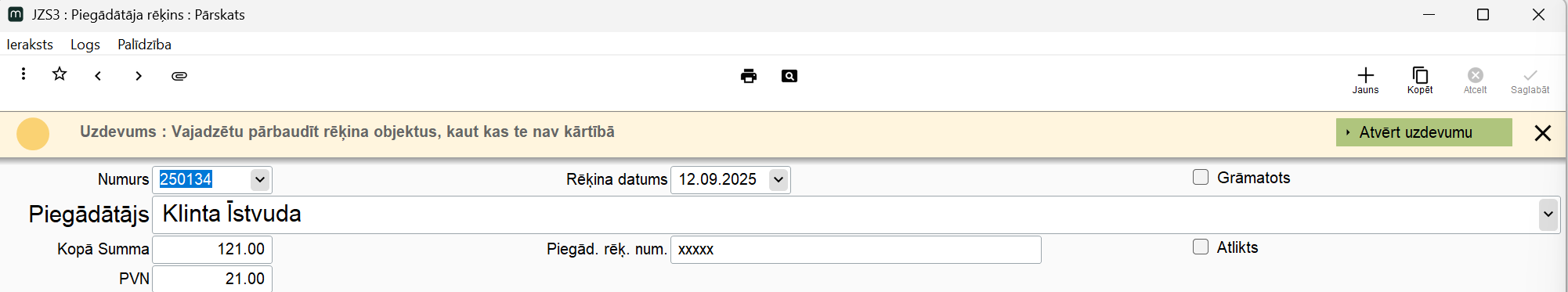 Izveidotais uzdevums būs piesaistīts ierakstam ar kutu tas ir saistīts.