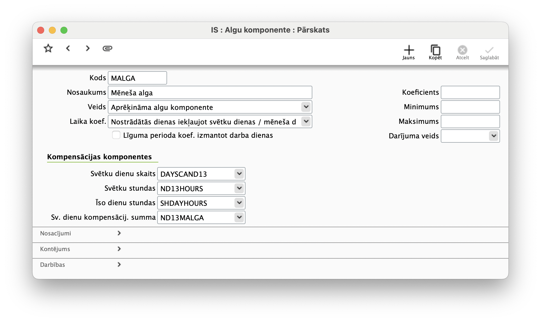 - Modulis Algas > Iestatījumi > Algu komponentes >